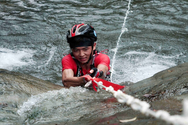 ? ? 40公里溯溪越野個人賽男子前三名分別為:王治虎(貴州,4小時05分54秒)、駱滔(貴州,4小時07分16秒)、岑萬江(浙江,4小時10分16秒) 程斌 攝
