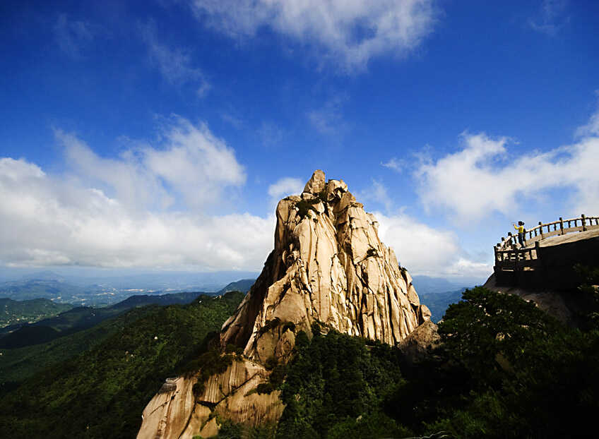 第六次游天柱山,45峰峰峰不同,17嶺嶺貌各異。感覺有三。彰顯神韻的還是天柱峰,峰頂上偌大的一堆巖石如柱、如錐,巍然聳立,直插云霄,其雄偉令歷代文人墨客驚嘆不已。唐代詩人白居易來此稱贊道:“天柱一峰擎日月,洞門千仞鎖云雷?!卑烟熘叫蹅ス妍惖木吧?#xff0c;形象生動地表現(xiàn)了出來,天柱山也因此而得名。