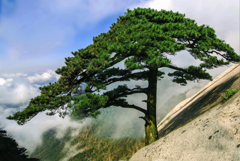 登天柱,滿目皆松。在安徽潛山市天柱山上,千年古松不下萬(wàn)株,千姿百態(tài)。其中尤以群松之首的天柱松最為出名。天柱松與日月為伴,風(fēng)雨為友,據(jù)了解,已有1000多歲。