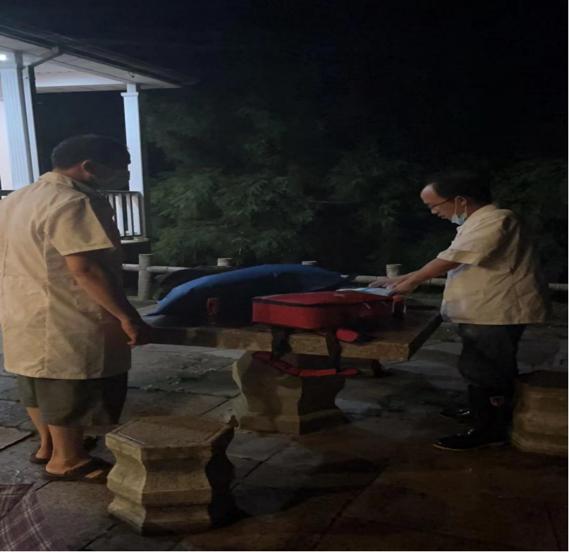 得悉萬(wàn)女士的緊急狀況,指導(dǎo)員第一時(shí)間聯(lián)系了景區(qū)綜合執(zhí)法大隊(duì)大隊(duì)長(zhǎng)劉運(yùn)中,劉運(yùn)中接到匯報(bào)后立刻安排天柱山急救站醫(yī)護(hù)人員與執(zhí)法隊(duì)員、景區(qū)派出所工作人員一起前往煉丹湖接待中心進(jìn)行救助,安排客運(yùn)公司人員駕駛急救車(chē)輛在大龍窩游客出口待命,同時(shí)向景區(qū)管委會(huì)相關(guān)領(lǐng)導(dǎo)和市疫情防控指揮部進(jìn)行了匯報(bào),并奔赴景區(qū)現(xiàn)場(chǎng)指揮救助。于是,雷雨交加的景區(qū)山徑夜幕中就出現(xiàn)了一群打著手電筒行色匆匆的一群人。