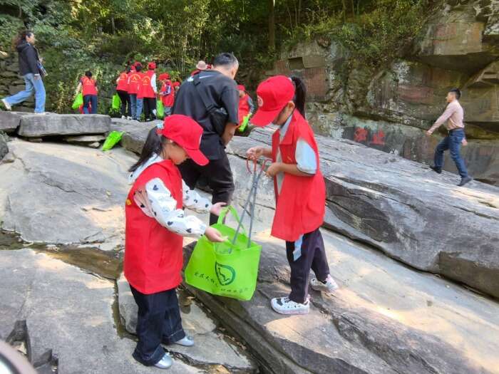 山谷流泉景區(qū)里,景區(qū)志愿者為招募而來的小學(xué)生志愿者穿上紅色小馬甲,戴上小紅帽,送上國旗貼紙和小國旗,并帶上火鉗、方便袋等小工具在景區(qū)拾撿垃圾,參與古箏學(xué)習(xí)、弈棋、朗誦古詩等豐富多彩的互動志愿活動,一抹抹“中國紅”流動在景區(qū)里,大家都感受到奉獻(xiàn)的快樂,一粒?!皭邸钡姆N子悄然播種在小志愿者的心田。與此同時,志愿者們還在山谷流泉文化園、天柱山地質(zhì)公園博物館開展免費講解、宣傳天柱山歷史文化、天柱山故事等服務(wù)。