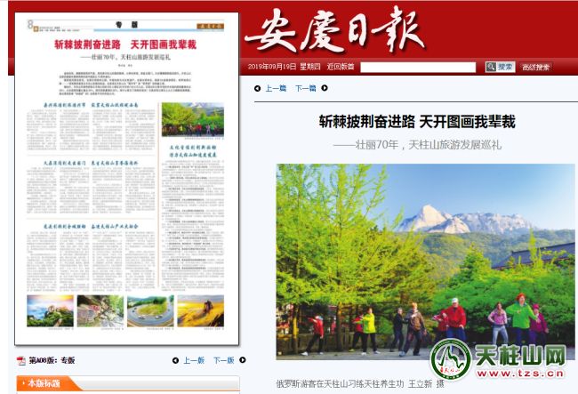 金秋的風(fēng),滿載著收獲的氣息,親撫著天柱山的滿目錦繡。從養(yǎng)在深閨,到走出國(guó)門,從步履蹣跚到超邁前行,天柱山以全新的面貌和累累碩果向新中國(guó)成立70周年獻(xiàn)禮!